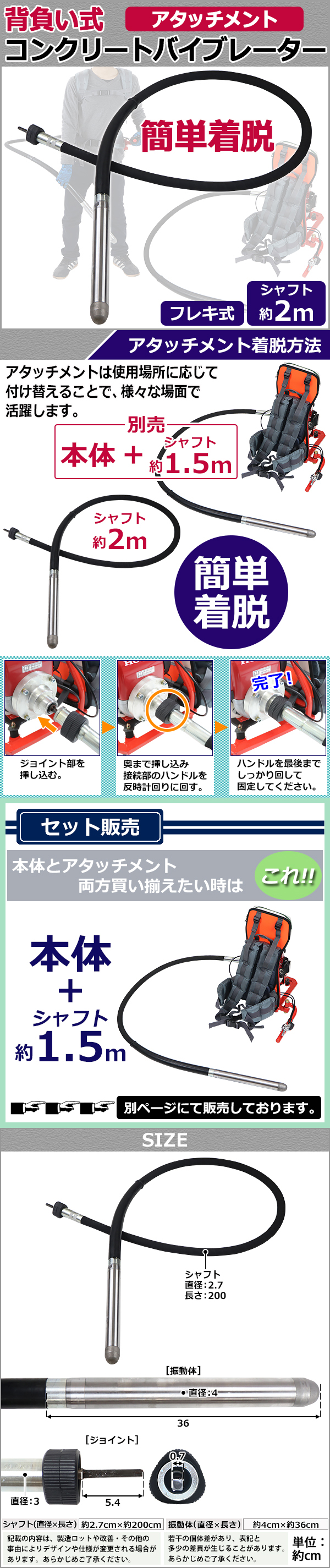- 送料無料 背負い式 コンクリートバイブレーター 単品 リードシャフト 振動筒 シャフト長さ約2m シャフトセット コンクリート振動機 フレキ