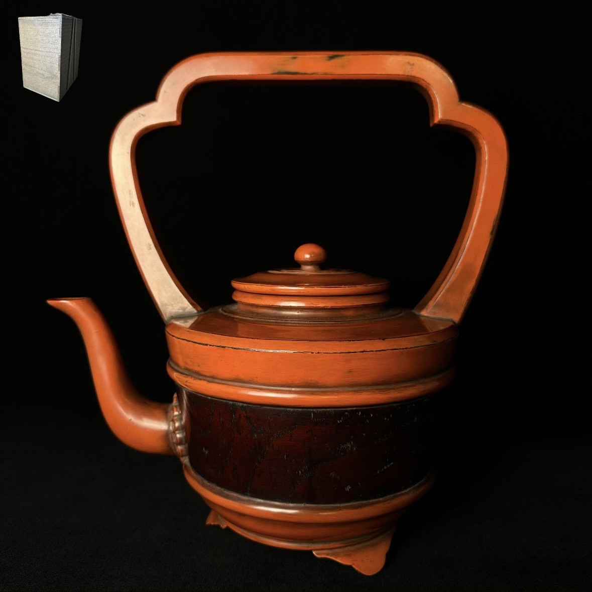 - コレクター買取品 根来塗 茶道具 湯桶 水柱 漆器 朱漆 蓋物 木箱付 和食器 時代物