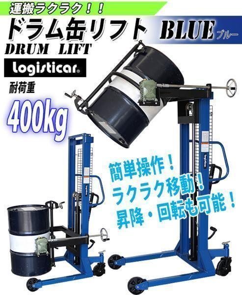 > 新品 ドラム缶リフト 耐荷重400kg 青 ドラム缶 運搬車 台車 ドラム台車 キャリー ドラムキャリー ドラムリフター