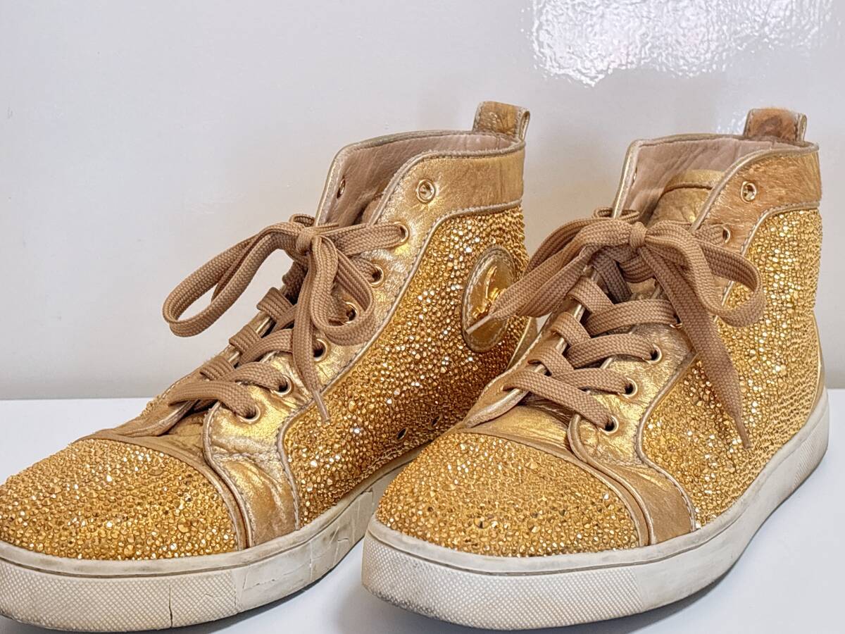> Christian Louboutin クリスチャンルブタン スワロフスキー ゴールド ハイカット メンズ スニーカー 42サイズ 破損あり