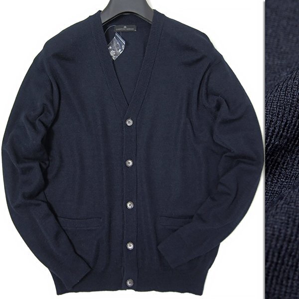 - 新品 クリスチャンジョルジュ 秋冬 ウール ニット カーディガン LL 紺 【SSA12-23400_10_LL】 メンズ セーター ウォッシャブル Vネック
