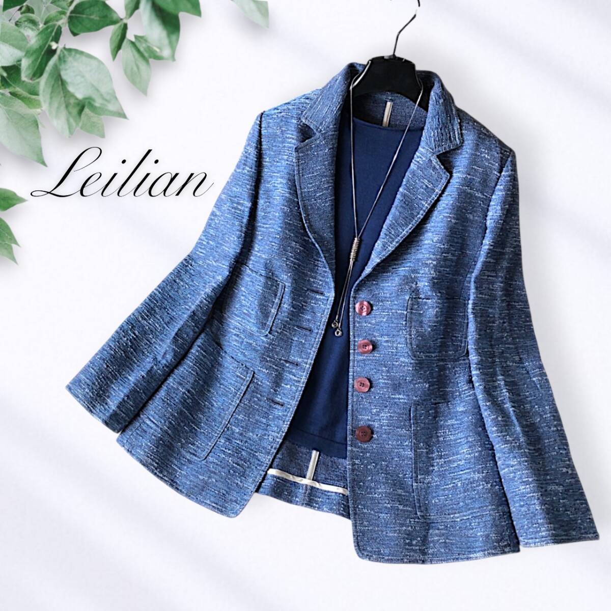 - A04◆極美品 レリアン Leilian 大きいサイズ 42 11 L 前後 ミックス ツイード シングル テーラード ジャケット 羽織り アウター 人気カラー