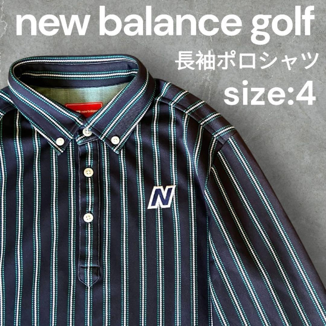 - 【人気】new balance golf 長袖ポロシャツ size:4 ネイビー ニューバランス ゴルフ スポーツウェア ストライプ カジュアル メンズ