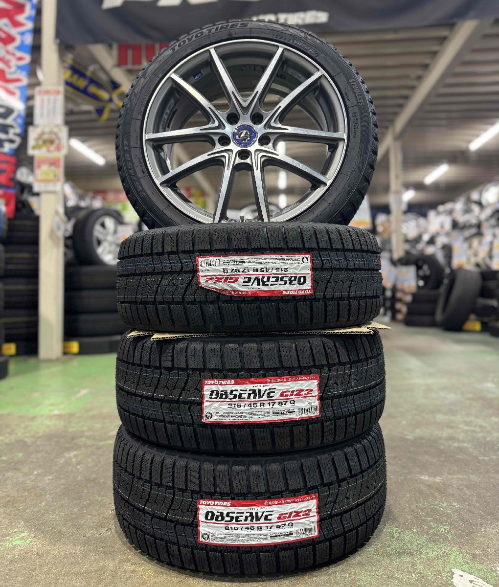 > ☆86 BRZ レクサスCT [新品スタッドレス] TOYO オブザーブGIZ2 215/45R17 2025年製 +[中古] 社外アルミホイール 17インチ 4本セット!