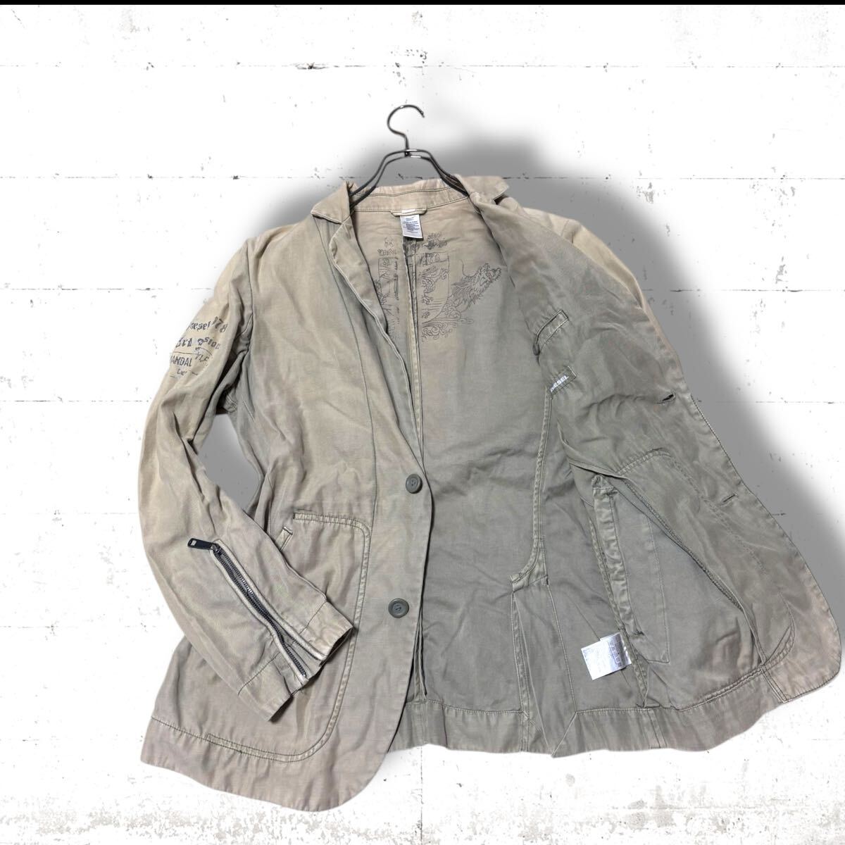 > DIESEL リネン混 ミリタリー ワーク ジャケット アンコン カバーオール ディーゼル カーキ ベージュ Mサイズ コットン