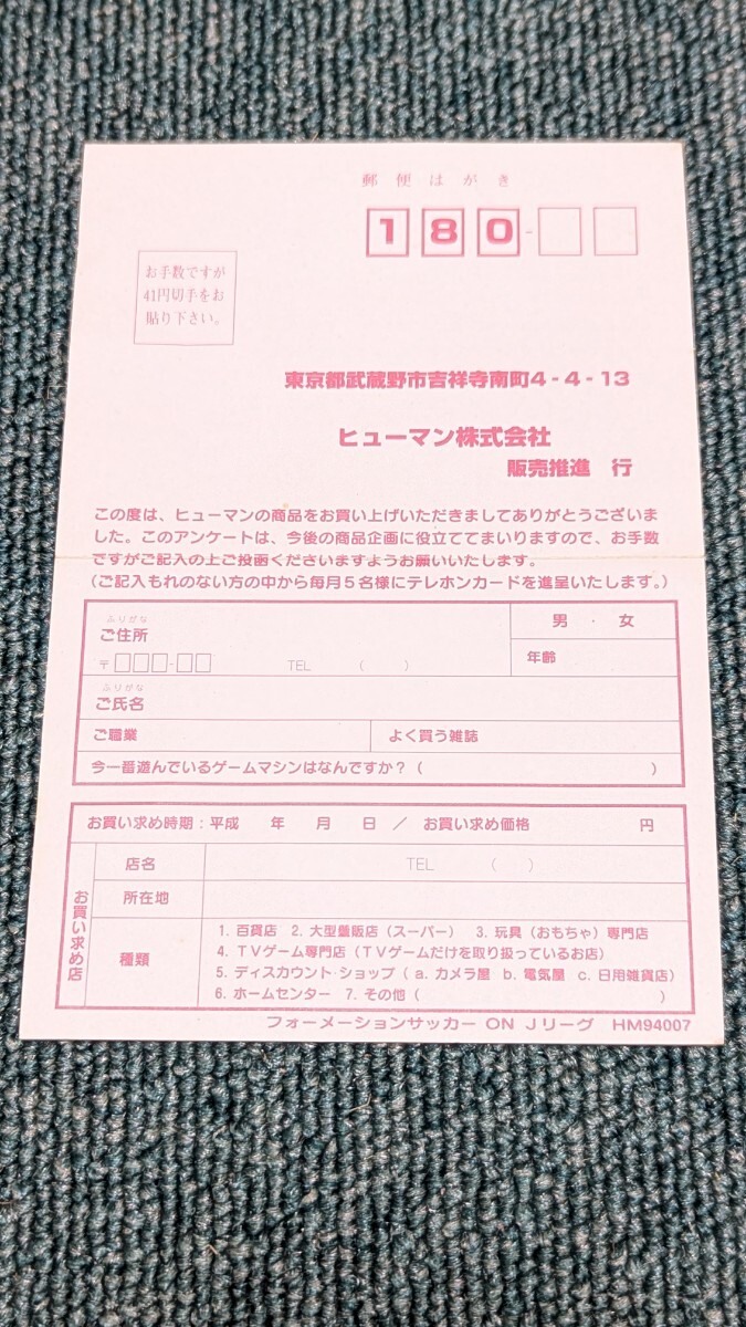 > PCエンジン ヒューマン フォーメーションサッカーonJリーグ ハガキのみ アンケート