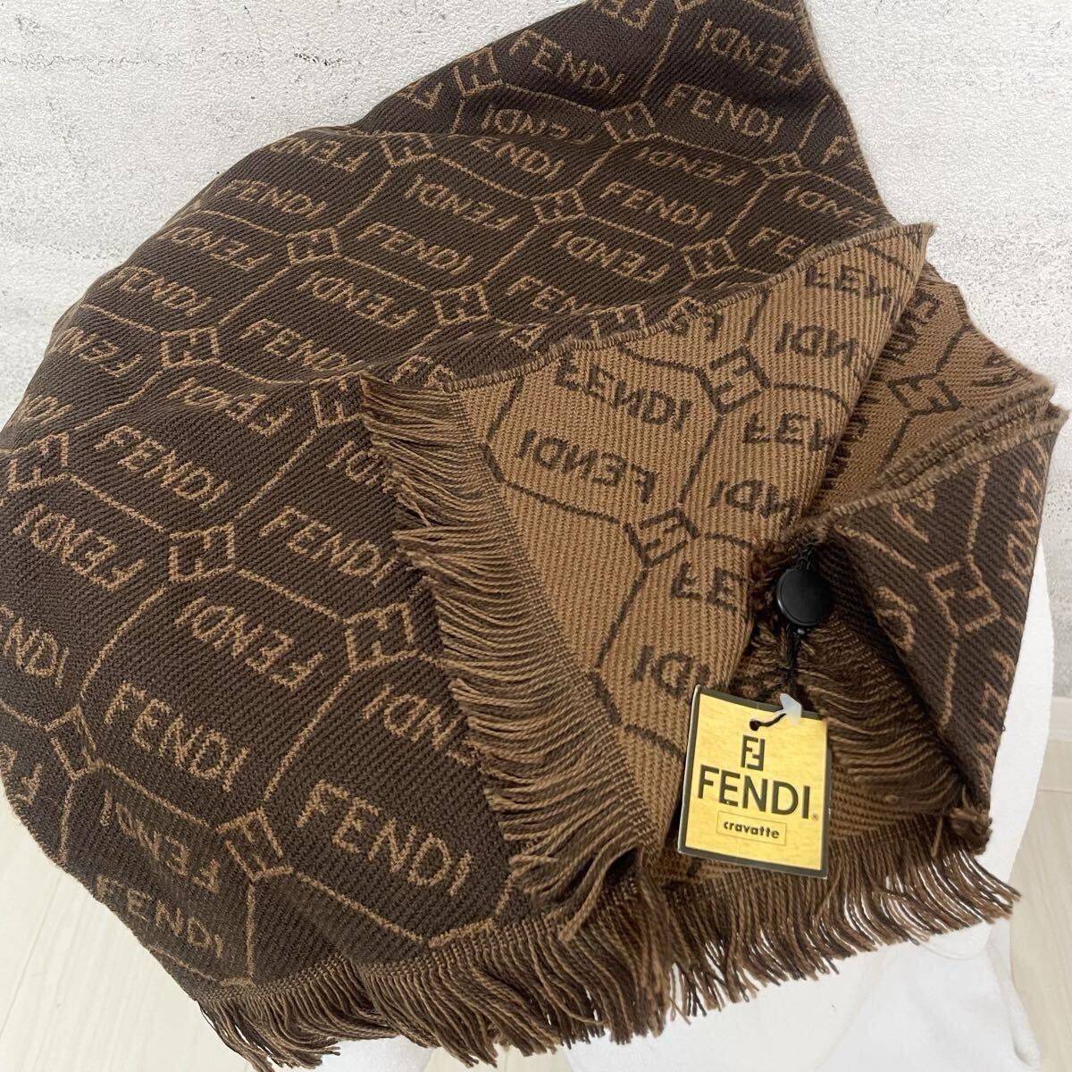 - 【新品未使用品】FENDI フェンディ ストール マフラー ズッカ ロゴ ウール 総柄 リバーシブル ブラウン