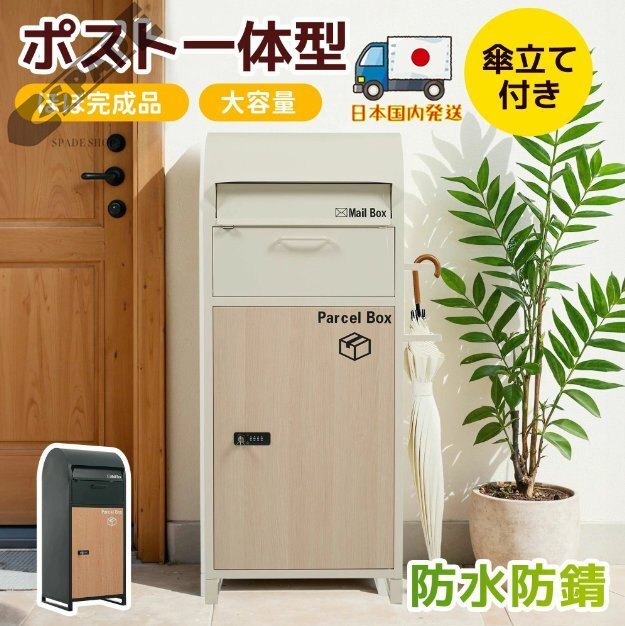 - 【国内発送】ポスト 置き型 ほぼ完成品 傘立て付き ポスト付き 宅配ボックス付き スタンドポスト おしゃれ 一戸建て用 大型 郵便受け