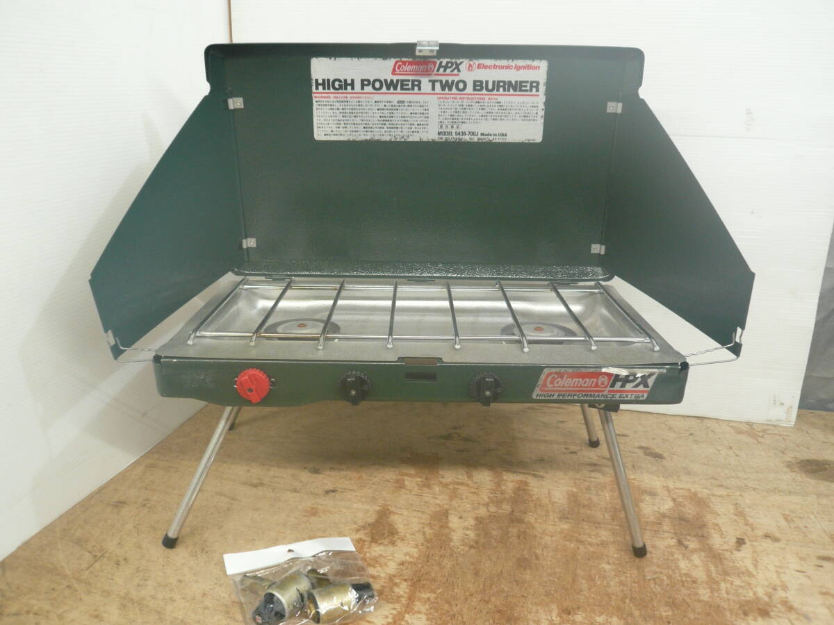 - ♪Coleman ハイパワーツーバーナー コンロ ガスコンロ 5436 -700J HPX 1996年製 スパーク確認 送料は説明欄※ジャンク品扱い ■100