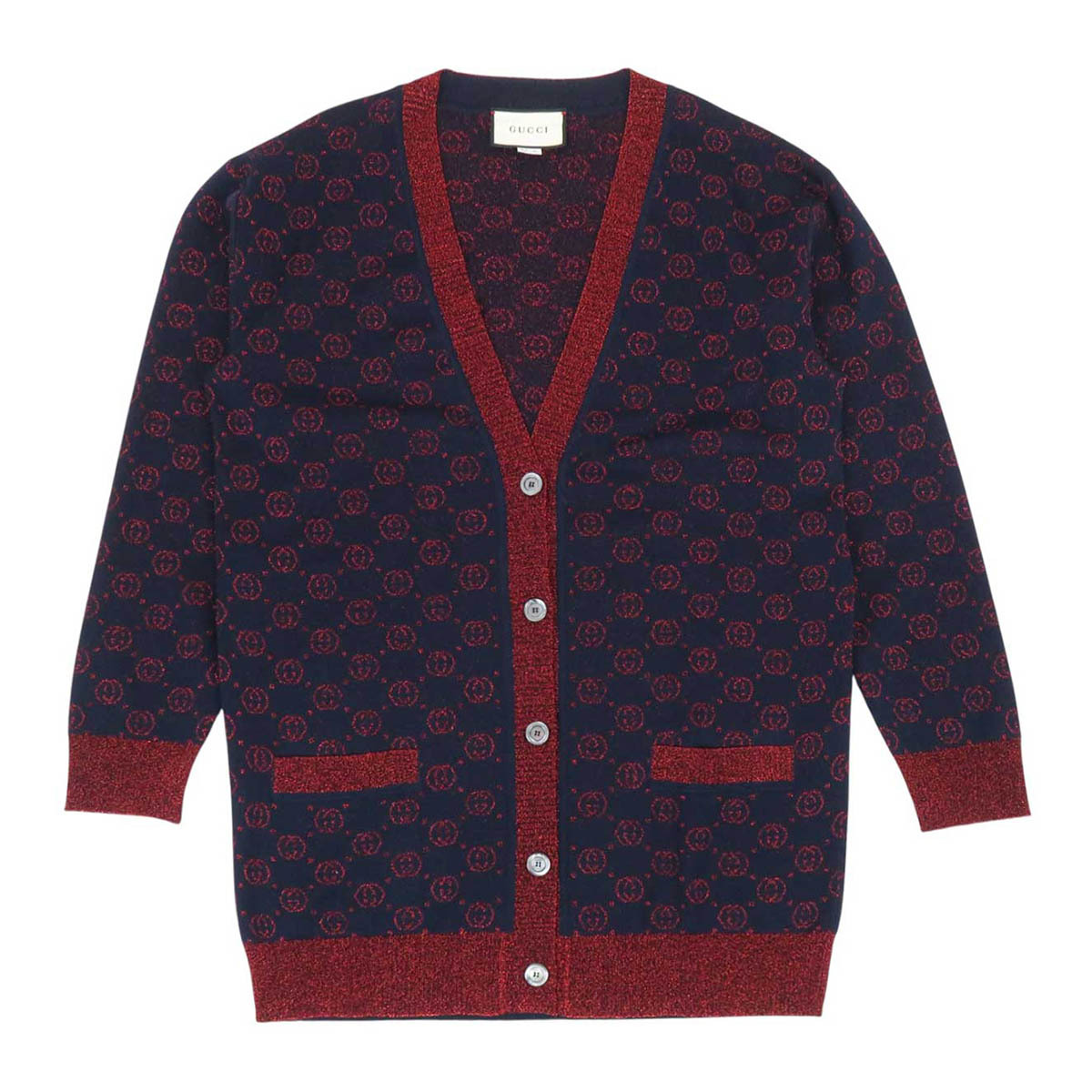 - グッチ インターロッキングG ロング ニット カーディガン 605910 レディース ネイビー レッド GUCCI 中古 【アパレル・小物】