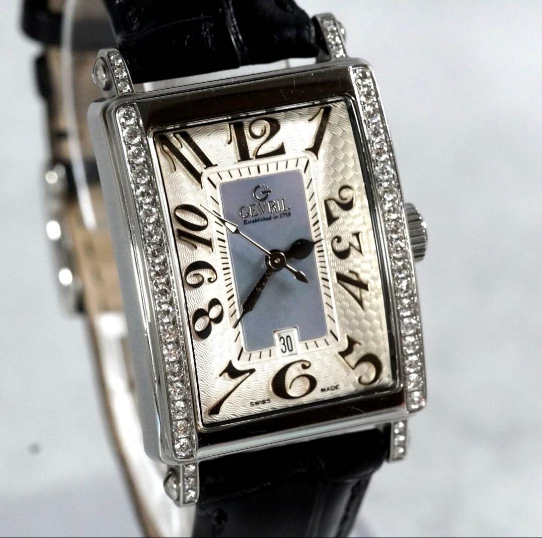 - 1円 スタート Gevril レクタンギュラー デイト ダイヤベゼル メンズ 腕時計 クォーツ 稼働品 quartz men's wacth 1スタ