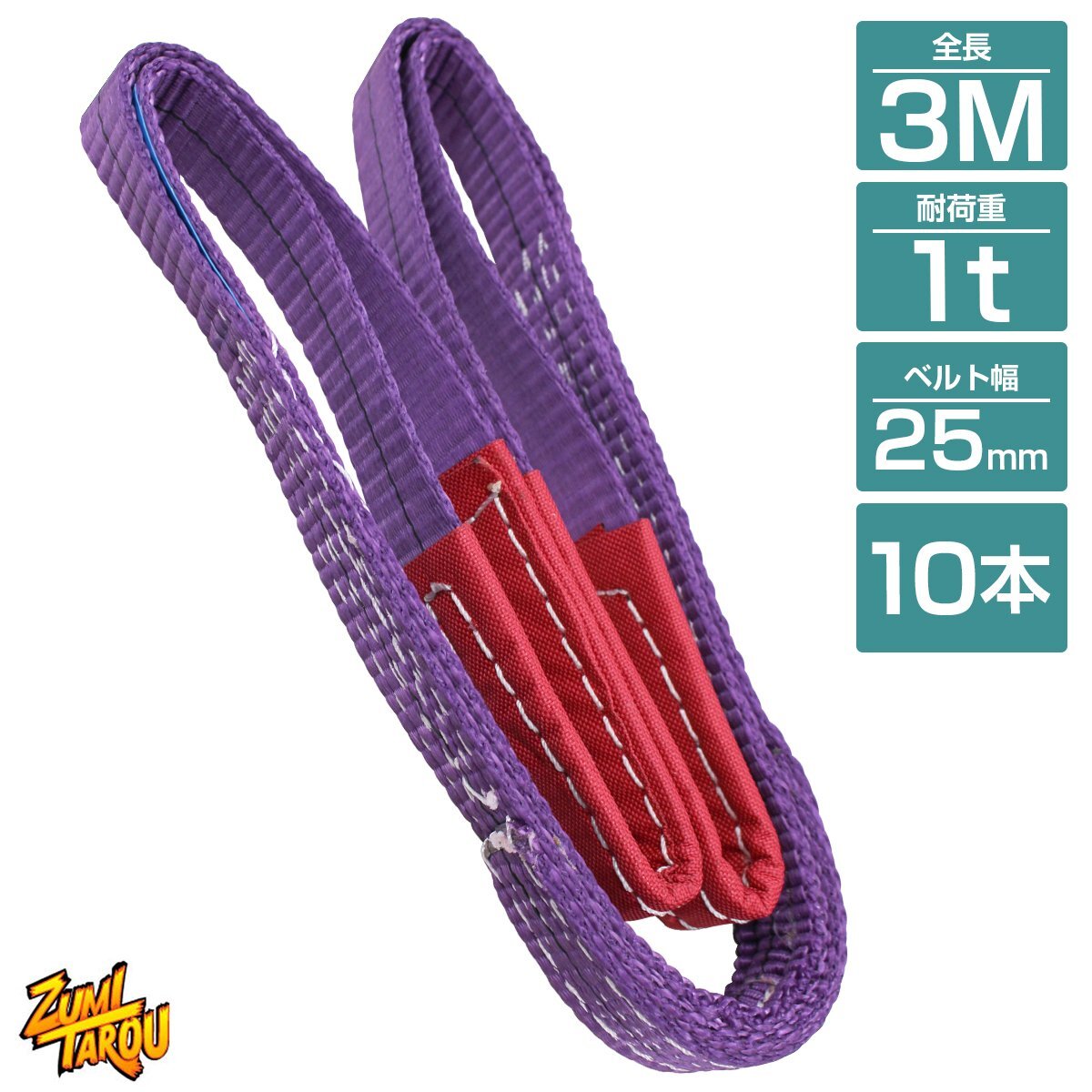 > [10本 セット/耐荷1t/長さ 3m] スリング ベルト 吊上げ ナイロン クレーン ロープ 荷吊り 玉掛け 牽引 運搬 1000kg 1トン 幅25mm