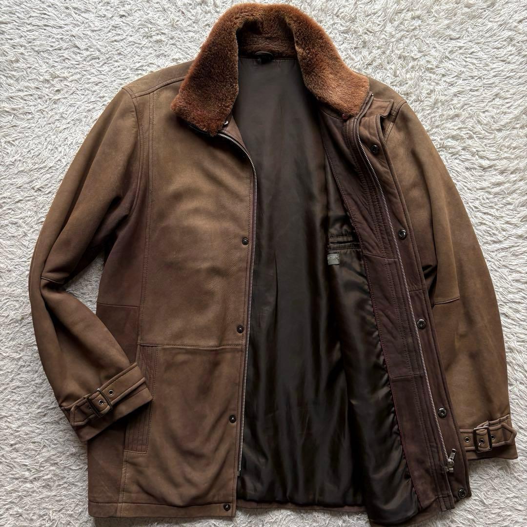 - 2way ★羊革 XLサイズ★ 襟ムートン WIND ARMOR ウインドアーマー レザー ジャケット 本革 ラムレザー Thinsulate 茶色 ブラウン LL メンズ