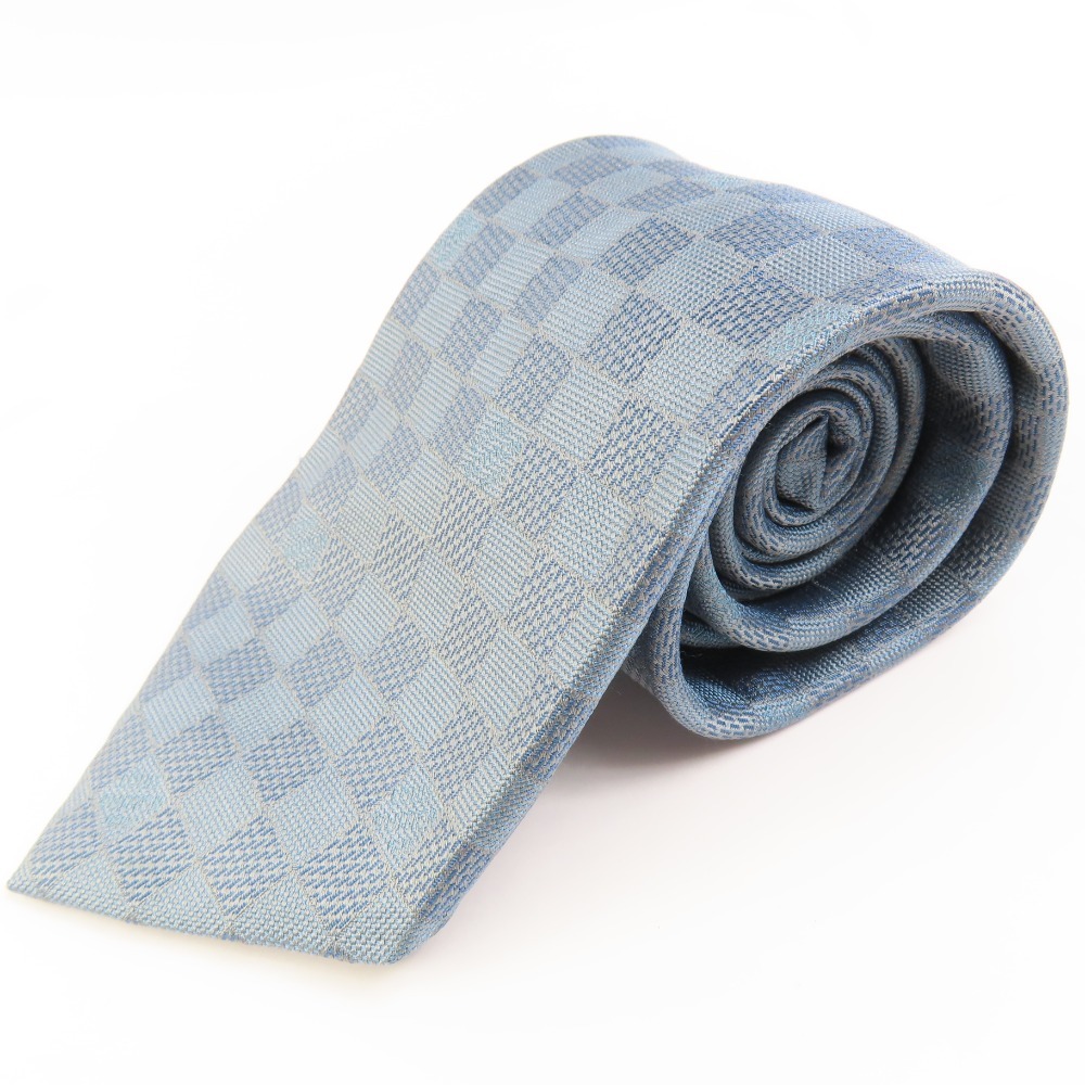 > 203476★1円スタート★LOUIS VUITTON ルイヴィトン 新品同様美品 ロゴ Yシャツ ビジネス スーツ 100%シルク ダミエ ネクタイ シルク ブルー