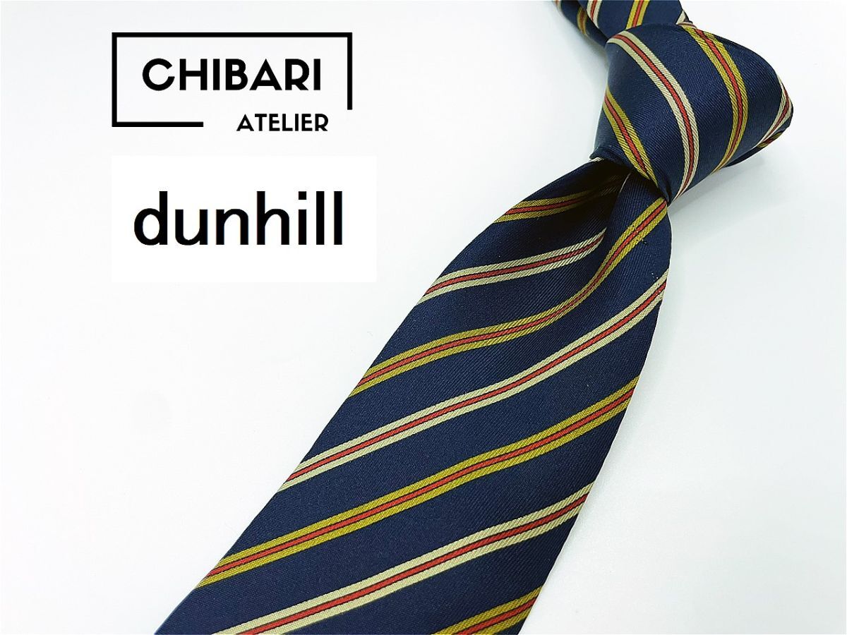 - 【超美品】dunhill ダンヒル ロゴ&レジメンタル柄 ネクタイ 3本以上 送料無料 メンズ ネイビー 1001219