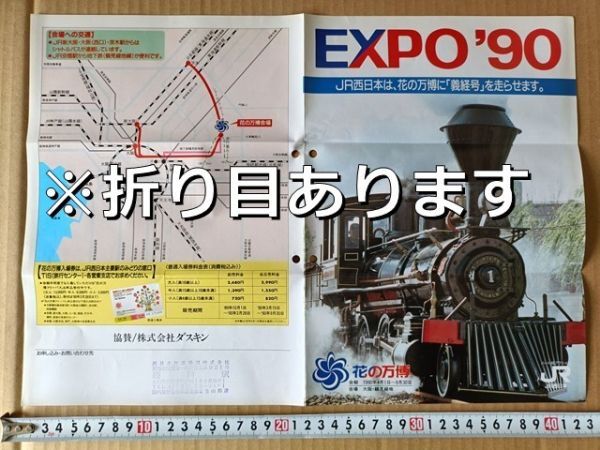 > 鉄道 リーフレット JR西日本 花の万博 EXPO1990 SL義経号 ドリーム・エキスプレス 1・2・3号車 山の駅・風車の駅 イラスト