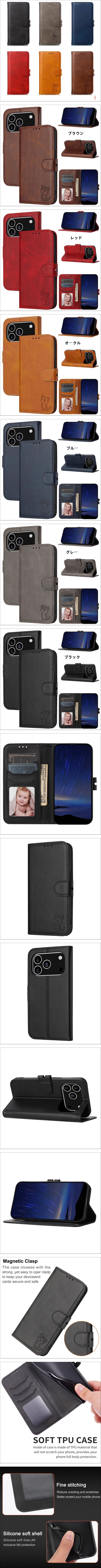 - iPhone17 (6.3インチ) 用 ケース 心猫デザイン カード収納 ビジネス 手帳型 フリップカバー 衝撃吸収 保護カバー