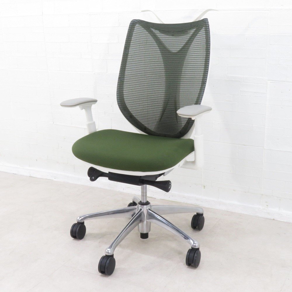 > okamura オカムラ サブリナ 肘付オフィスチェア C854BW FSZ5 2014年製 グリーン 事務 ハイバック メッシュ 椅子 EG18533 中古オフィス家具