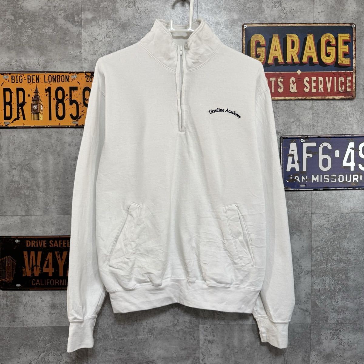 > Champion ハーフジップスウェット ホワイト M相当 Ursuline Academy チャンピオン 古着
