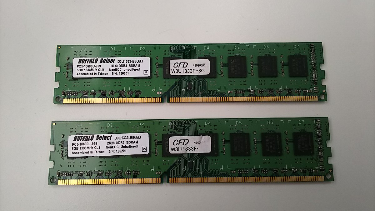 - BUFFALO SELECT メモリー◆DDR3 SDRAM 8GB◆PC3-10600U-999 2枚セット ◆ 中古品 ◆ D00027