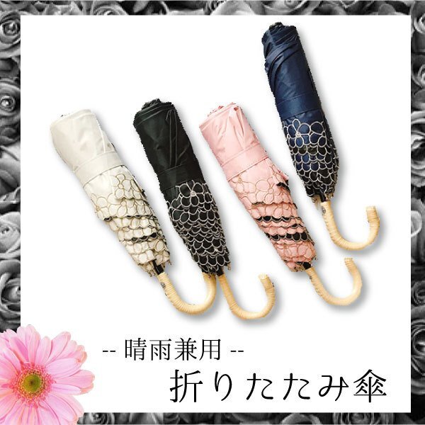 - 送料無料 フラワー 晴雨兼用 超軽量 折りたたみ日傘 /ネイビー ブラック アイボリー 遮光 遮熱 撥水 刺繍傘 折り畳み 日傘 レディース UV