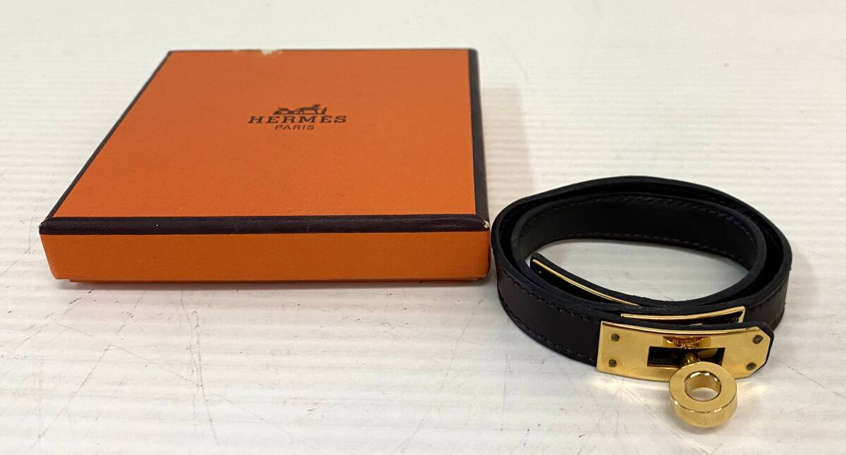 - ★☆【1円スタート】純正 HERMES エルメス ミニケリー ドゥブルトゥール ブラック ブレスレット 箱付き レザーブレスレット イ27☆★