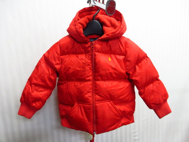 - ラルフローレン ロゴ刺繍ダウンジャケット SIZE4 4T 赤 ダウンパーカー フード付きダウンジャンパー 子供 キッズ 保温防寒アウター10222