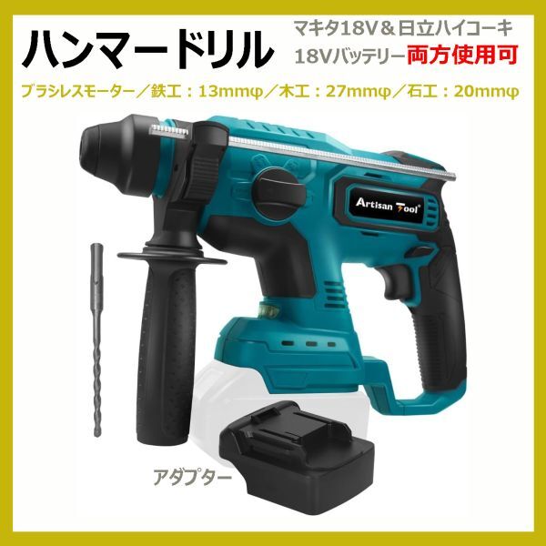 - ハンマードリル ATHD02B-H マキタ18V&日立ハイコーキ18Vバッテリーの両方使用可 電動 3モード ブラシレスモーター 電動 コードレス