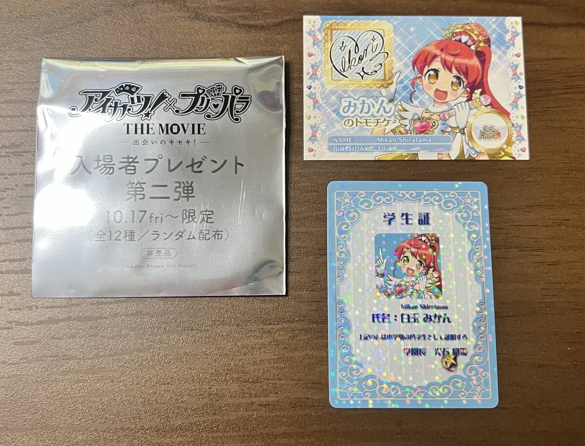 > アイカツ!×プリパラ THE MOVIE 出会いのキセキ! 入場者特典 第二弾 スターライト学園ミニ学生証&トモチケ風カード2枚セット 白玉みかん
