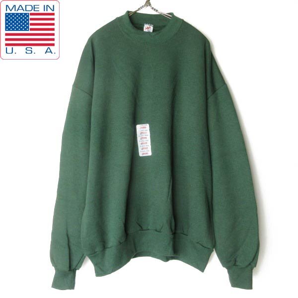 > 新品 80s USA製 JERZEES 無地 スウェット XL 緑系 グリーン ブランク ジャージーズ クルーネック トレーナー ビンテージ D152-13-0004ZV