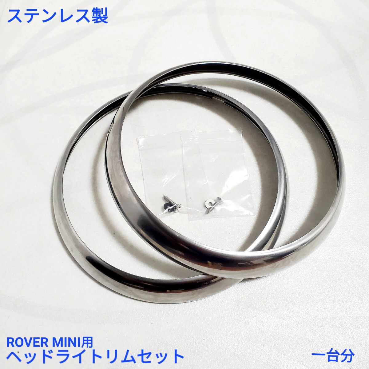 - ローバーミニ クラシックミニ ステンレス型 ヘッドライト リム / リング 左右セット 英国製品 新品