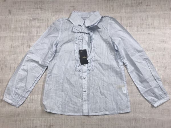 > 新品 3rd wave レトロ モード リボンタイ フリル レース ブザム ブサム ストライプ 長袖ドレスシャツ ブラウス レディース 9R 水色