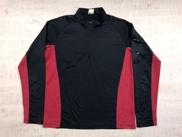 > ナイキ NIKE イヤホン穴 ポケット オールド スポーツ トレーニングウェア ハーフジップ ジャージ カットソー Tシャツ ロンT メンズ L 紺/赤