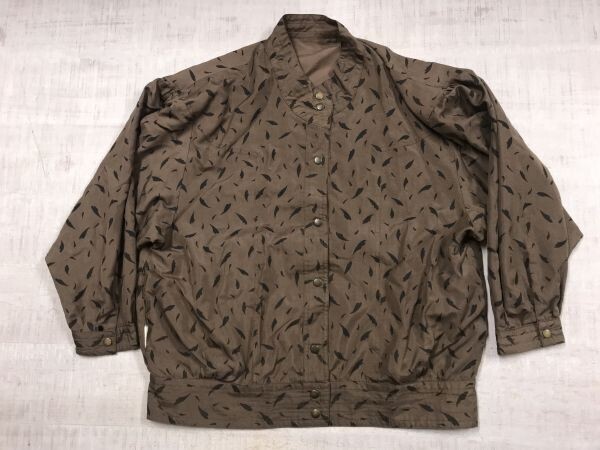- OLD オールド 昭和レトロ 古着 羽根 リーフ 総柄 ブルゾン ジャケット レディース 肩パット有 ブラウン