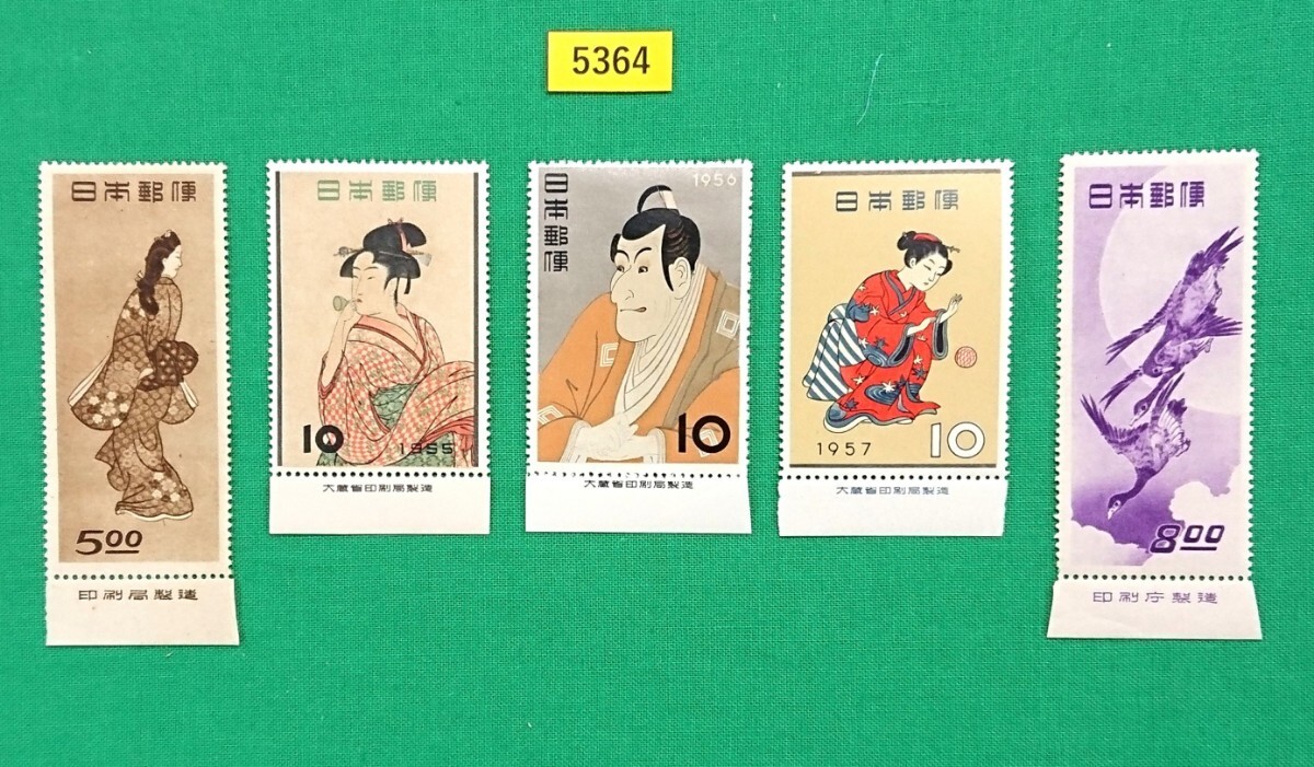 > 稀な最高品質!印刷庁/大蔵省銘版付/月に雁/見返り美人/ビードロ/写楽/まりつき/趣味週間/NH/シミシワ無/糊艶良/カタログ価41,700円№5364