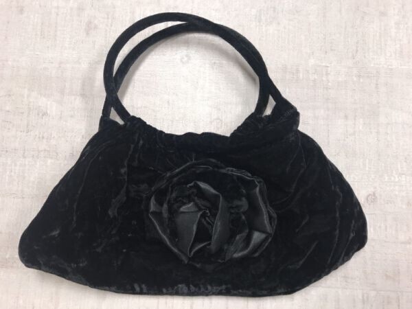 - MALI' PARMI レトロ モード Y2K ブティック エレガント バラ 薔薇 ローズ装飾 ベロア ハンド バッグ 鞄 レディース インドネシア製 黒