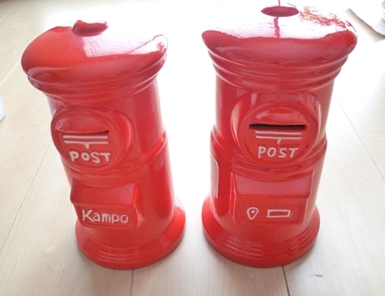 - ★郵便ポスト 貯金箱 2個セット 昭和レトロ 陶器製 未使用★