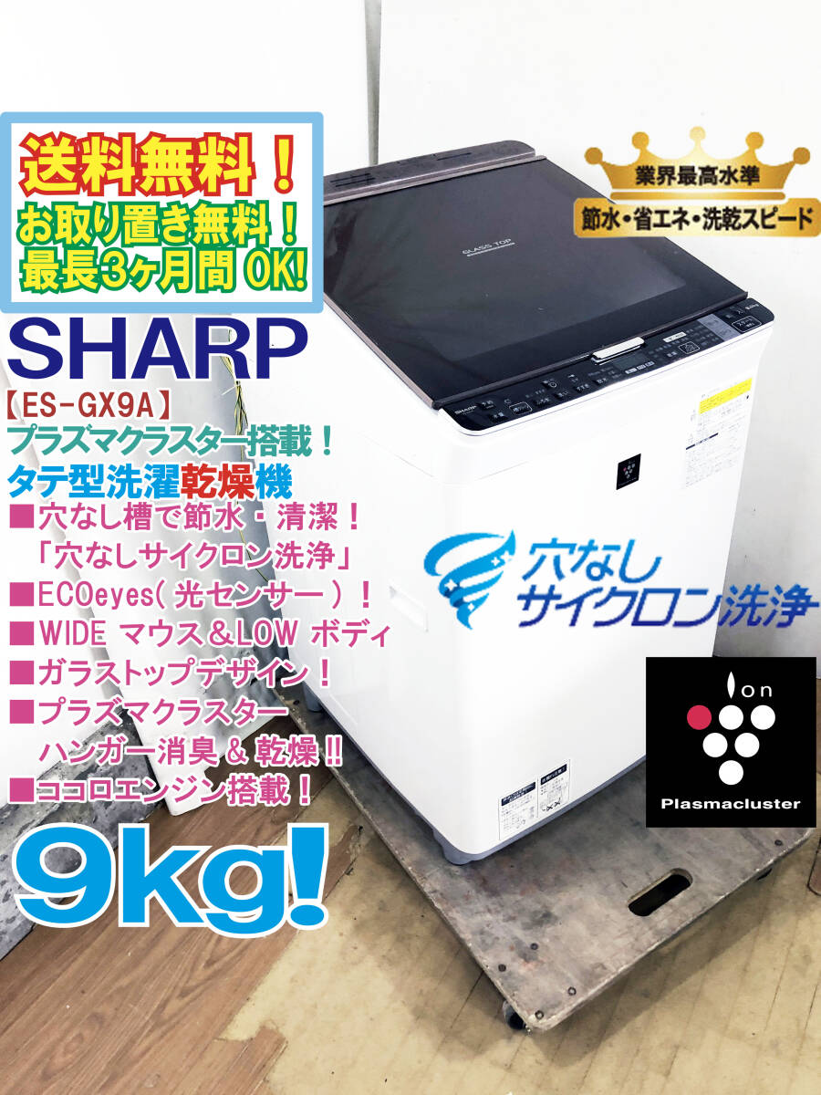 - 送料無料★極上超美品 中古★SHARP 9kg 穴なし槽で清潔/節水!プラズマクラスター!!タテ型洗濯乾燥機【ES-GX9A-T】FOYZ