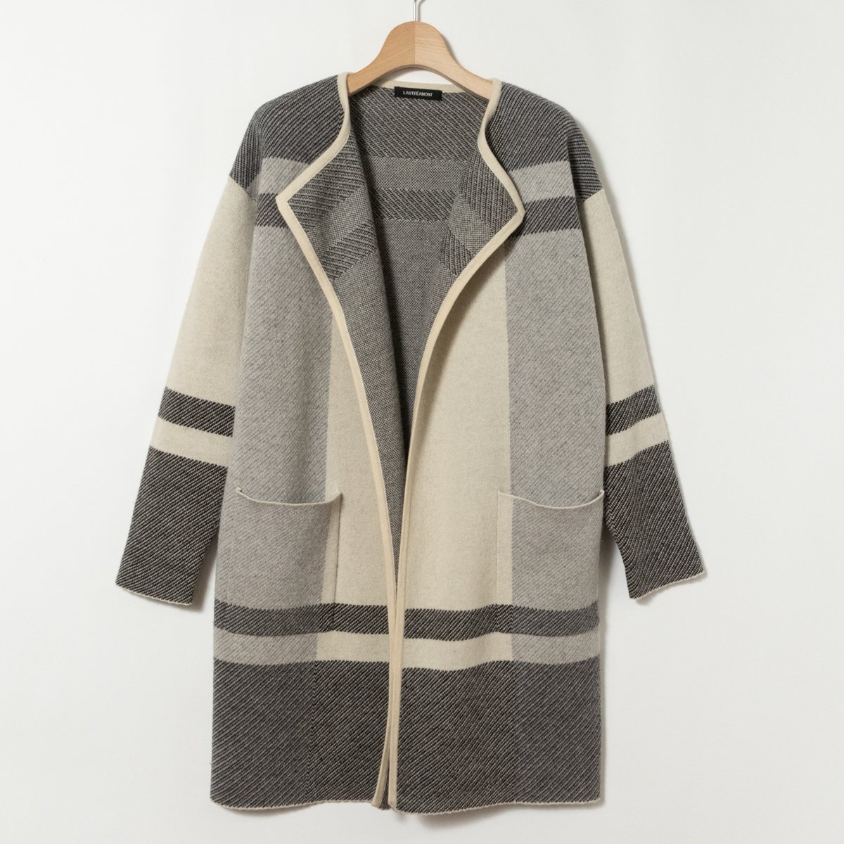 - LAUTREAMONT ロートレアモン レディース 長袖 ロングカーディガン ニット 毛 アクリル 38 パネルチェック柄 グレー×Lグレー アイボリー