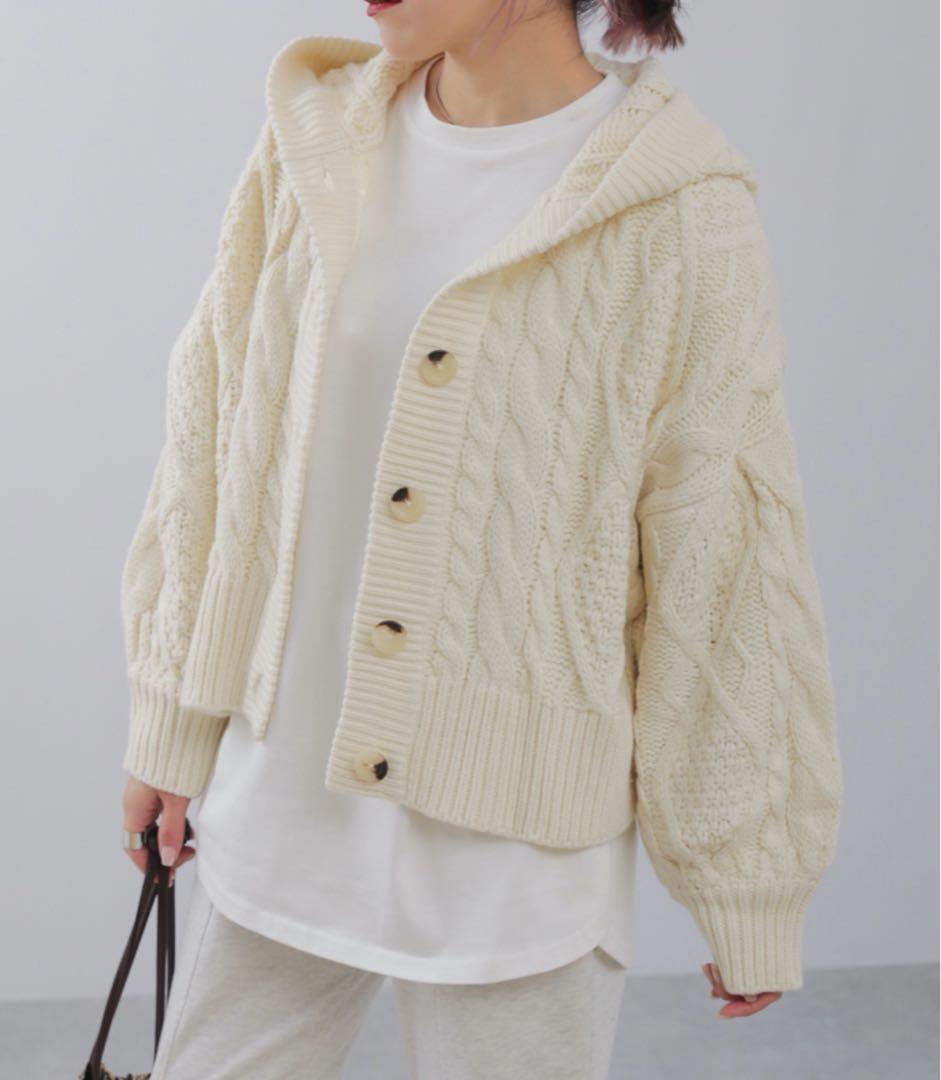 - 【新品】ap retro アプレトロ ボリュームスリーブケーブルニット カーデ