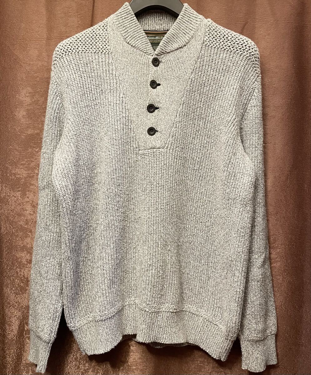 - Eddie Bauer ヘンリーネックセーター グレー Mサイズ エディーバウアー セーター ニット