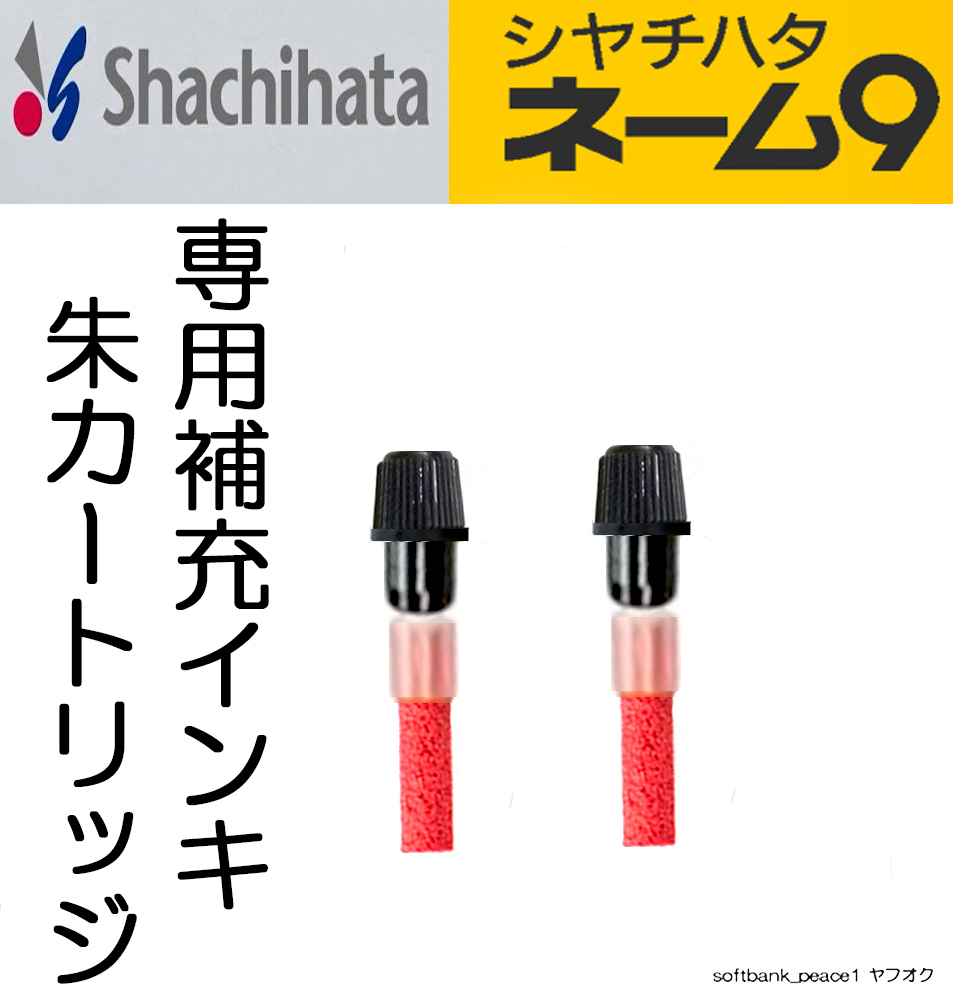 ●Shachihata「 ネーム9 印鑑XL-9用・インク 朱色 カートリッジ 2本(純正)取り外し品」日本メーカー正規品。