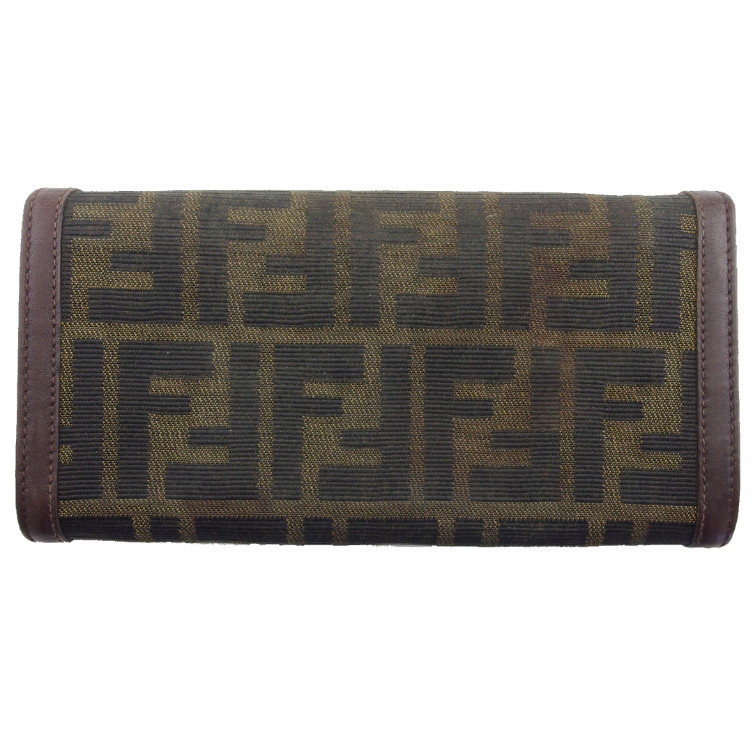 - フェンディ FENDI 長財布 ズッカ ダークブラウン×ベージュ×シルバー レディース 中古