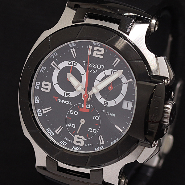 > 1円 保/箱付 稼働 ティソ ティーレース T048417A QZ クロノグラフ ブラック文字盤 メンズ腕時計 2908000 10NBG MST