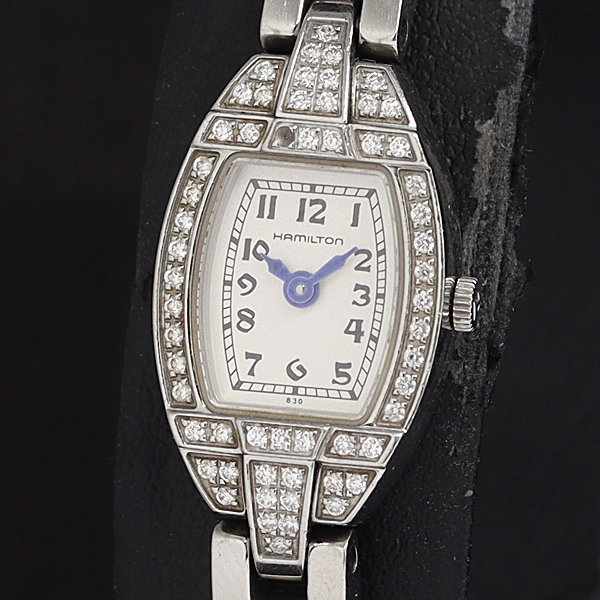 - 1円 保付 可動 良品 ハミルトン QZ レディ ハミルトン レプリカ QZ シルバー文字盤 H311510 ダイヤ レディ―ス腕時計 2908000 10NBG SMZ
