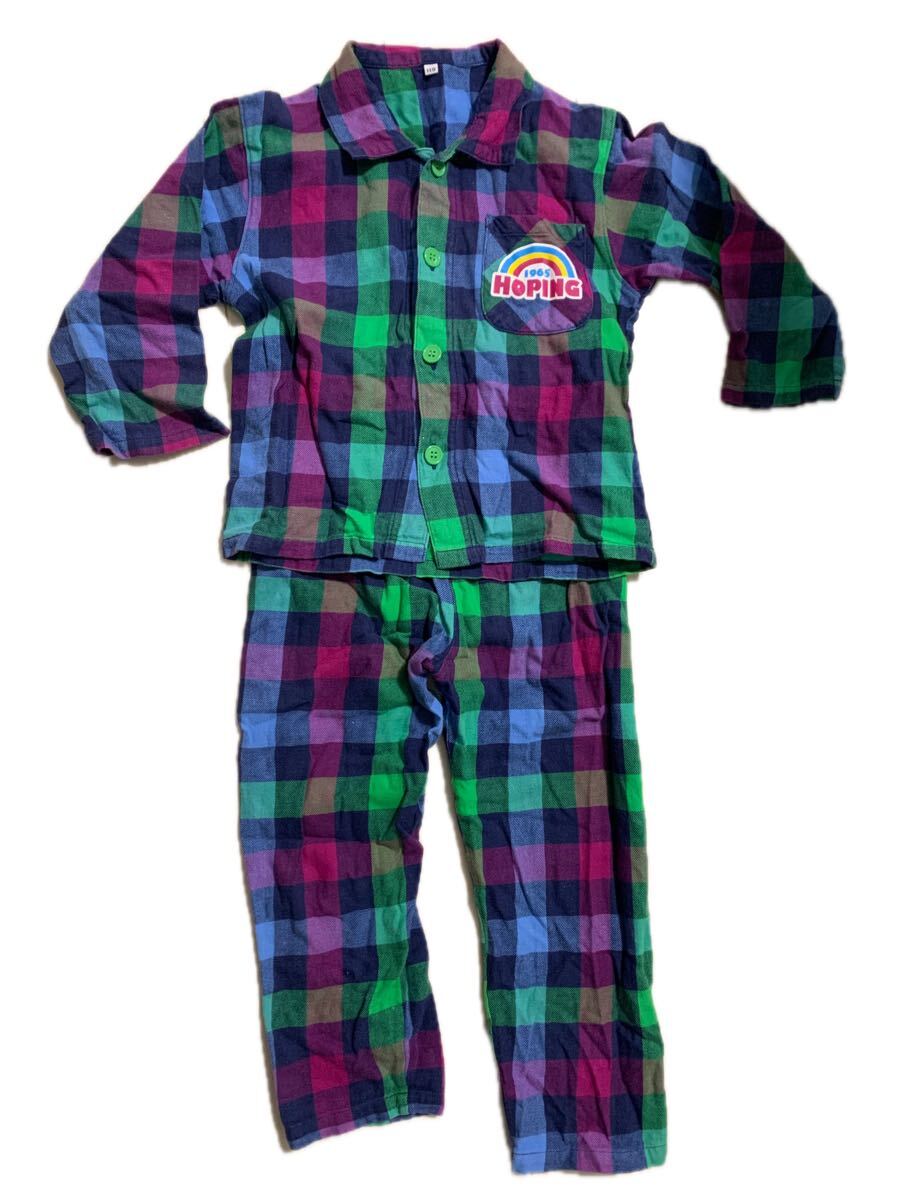 - 送料込み AEON パジャマ 綿100 チェック110cm 長袖 秋 冬 春 ボタン 男の子 女の子 上下セット キッズ ベビー服 男児 イオン