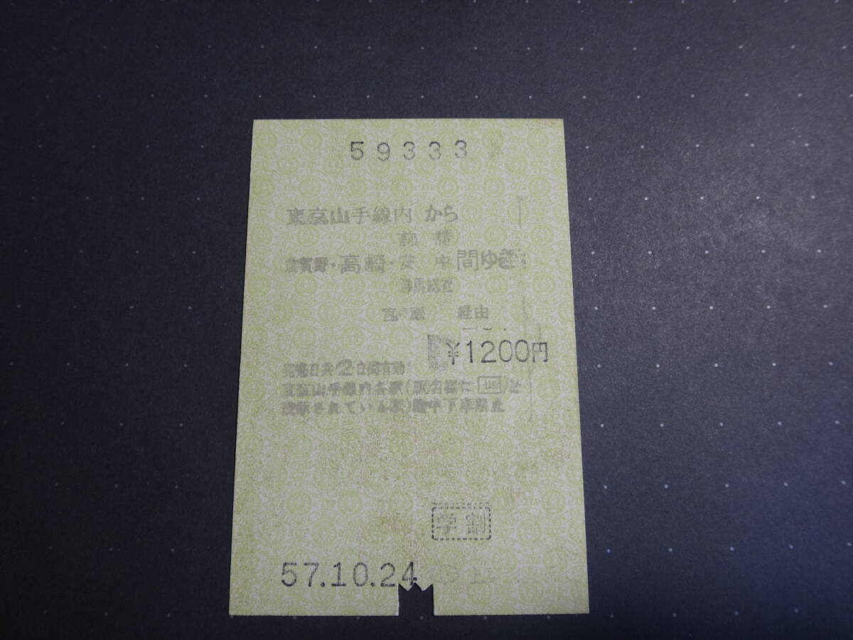 - 国鉄 東京山手線内から 倉賀野・高崎・前橋安中群馬総社間ゆき 昭和57年10月24日 乗車券
