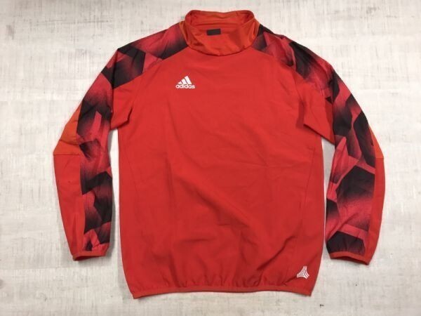 - アディダス adidas スポーツ トレーニング プラクティス サッカー ハイネック 柄切替 長袖シャツ カットソー キッズ リップストップ 140 赤