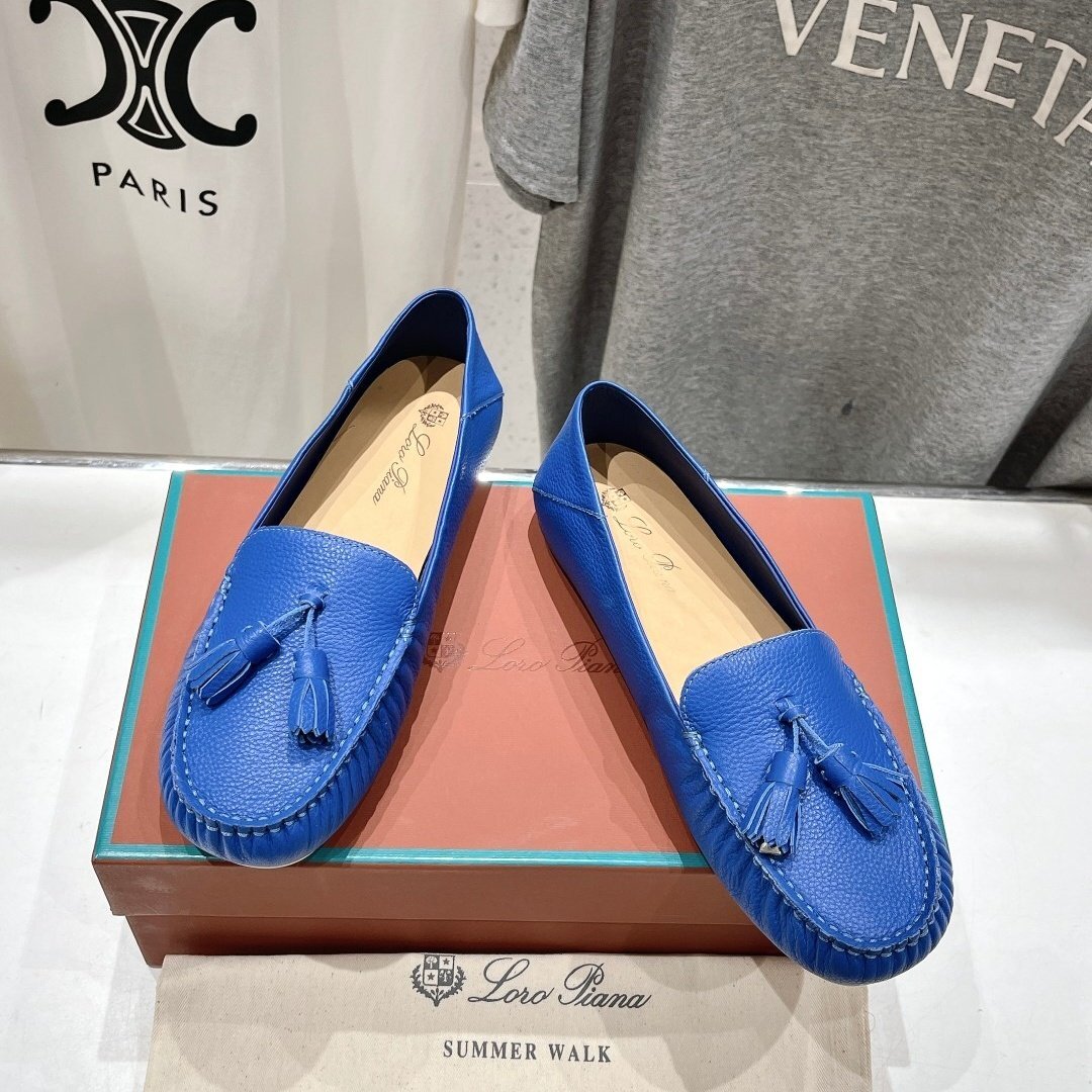 - ブルー24.0cm ★送料無料★ロロピアーナレディースサマーウォーク モカシン, タン カーフレザー, タッセル付き, ペブルグレイン レザー