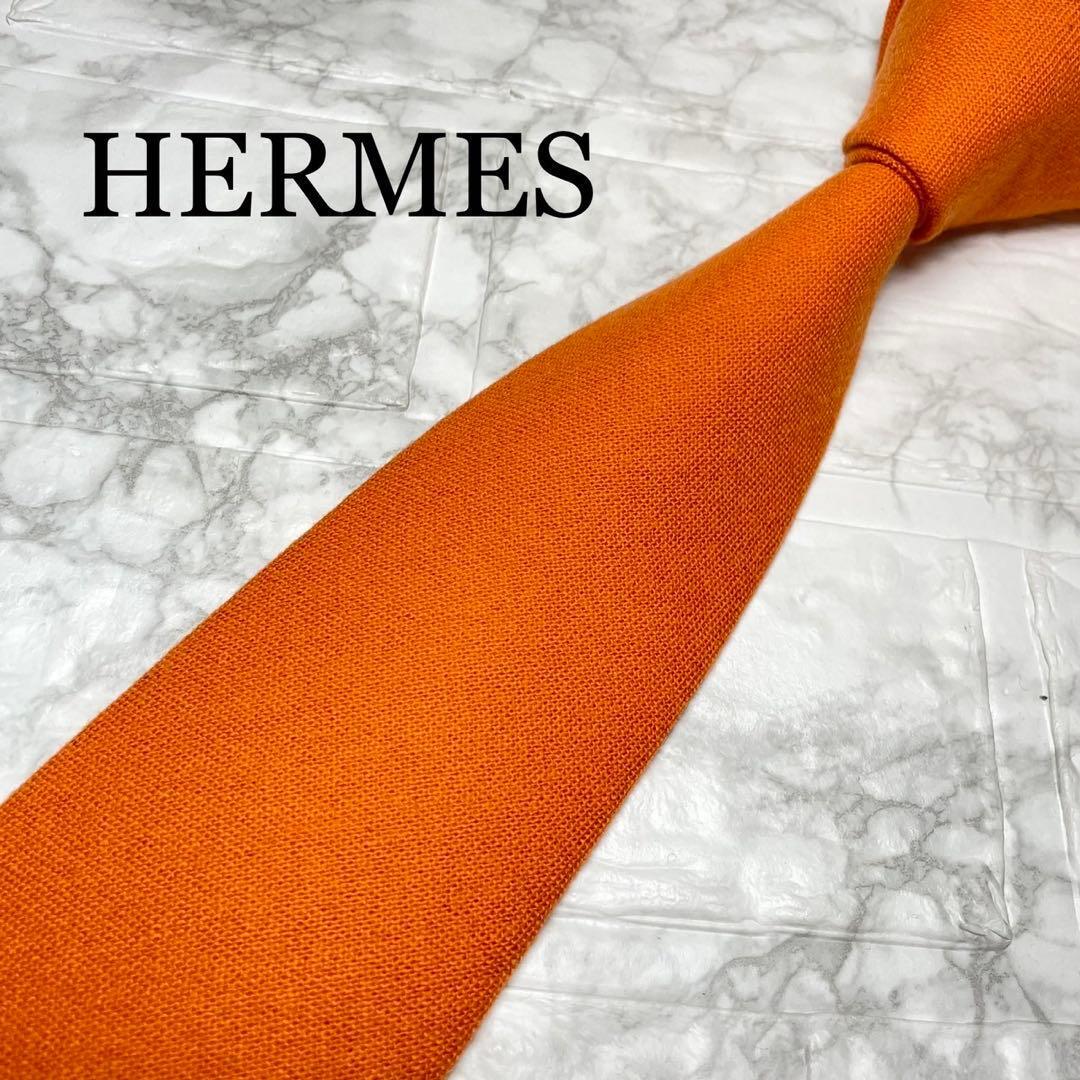 - 最高級 カシミヤ100% HERMES エルメス ネクタイ ソリッドタイ カシミヤ オレンジ スーツ シャツ カフス ビジネスバッグ